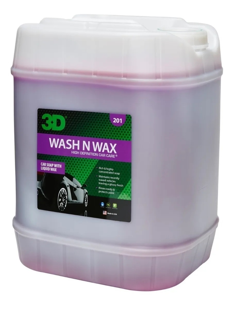 3D WASH & WAX es un shampoo altamente concentrado con cera liquida. Su espuma densa y firme desprende y encapsula la suciedad permitiendo una limpieza sin rayones, a la vez que ahorra tiempo y agua. Su fórmula con PH Neutro está especialmente diseñada para no quitar las capas de cera ya existente a la vez que añade una nueva, dejando su vehículo limpio y brillante lavado tras lavado. Funciona tanto al utilizarse en un Lavado a Mano como con hidrolavadora, obteniendo un mejor resultado con esta última al utilizar un FOAM KIT (T-20).
